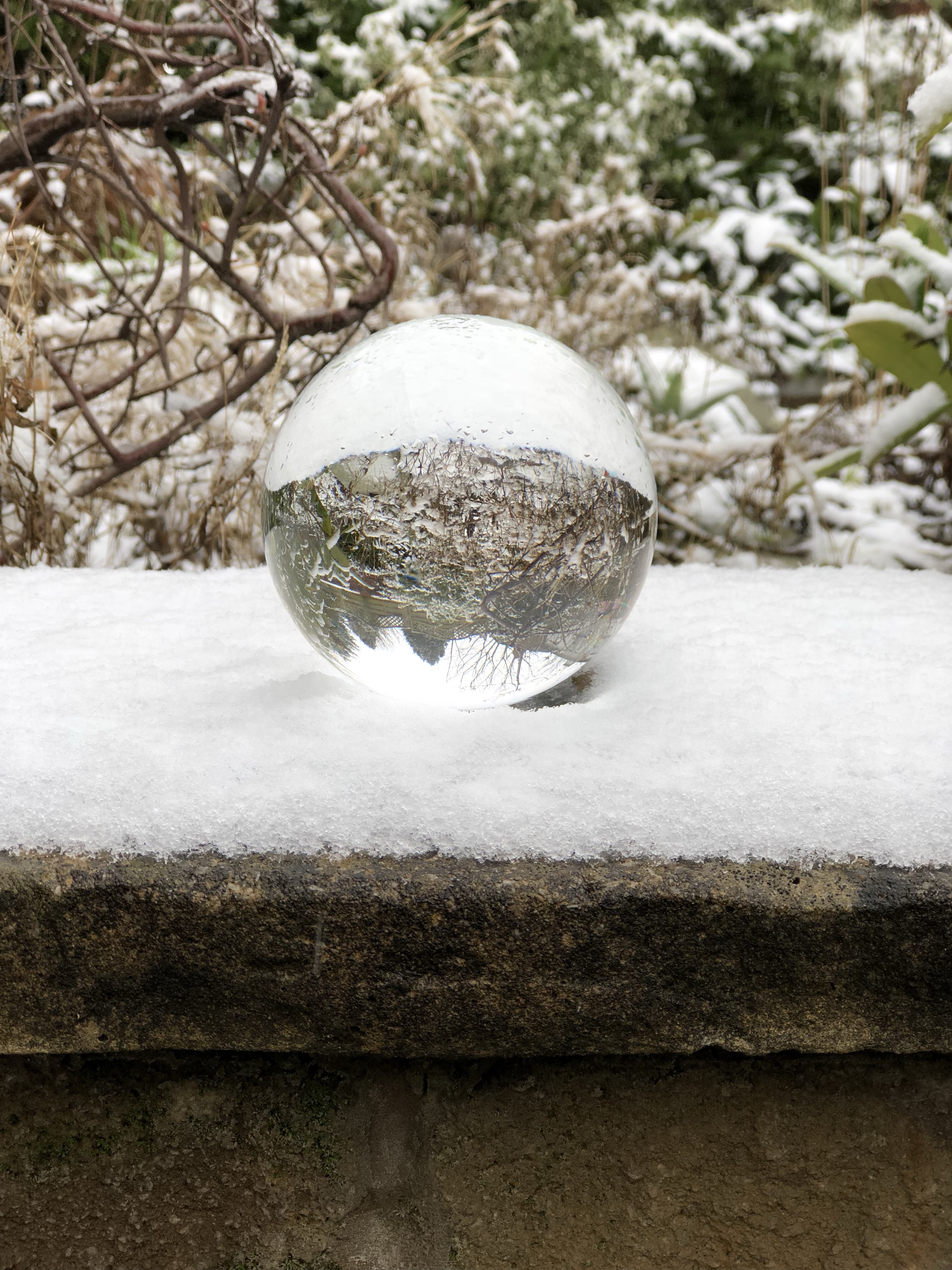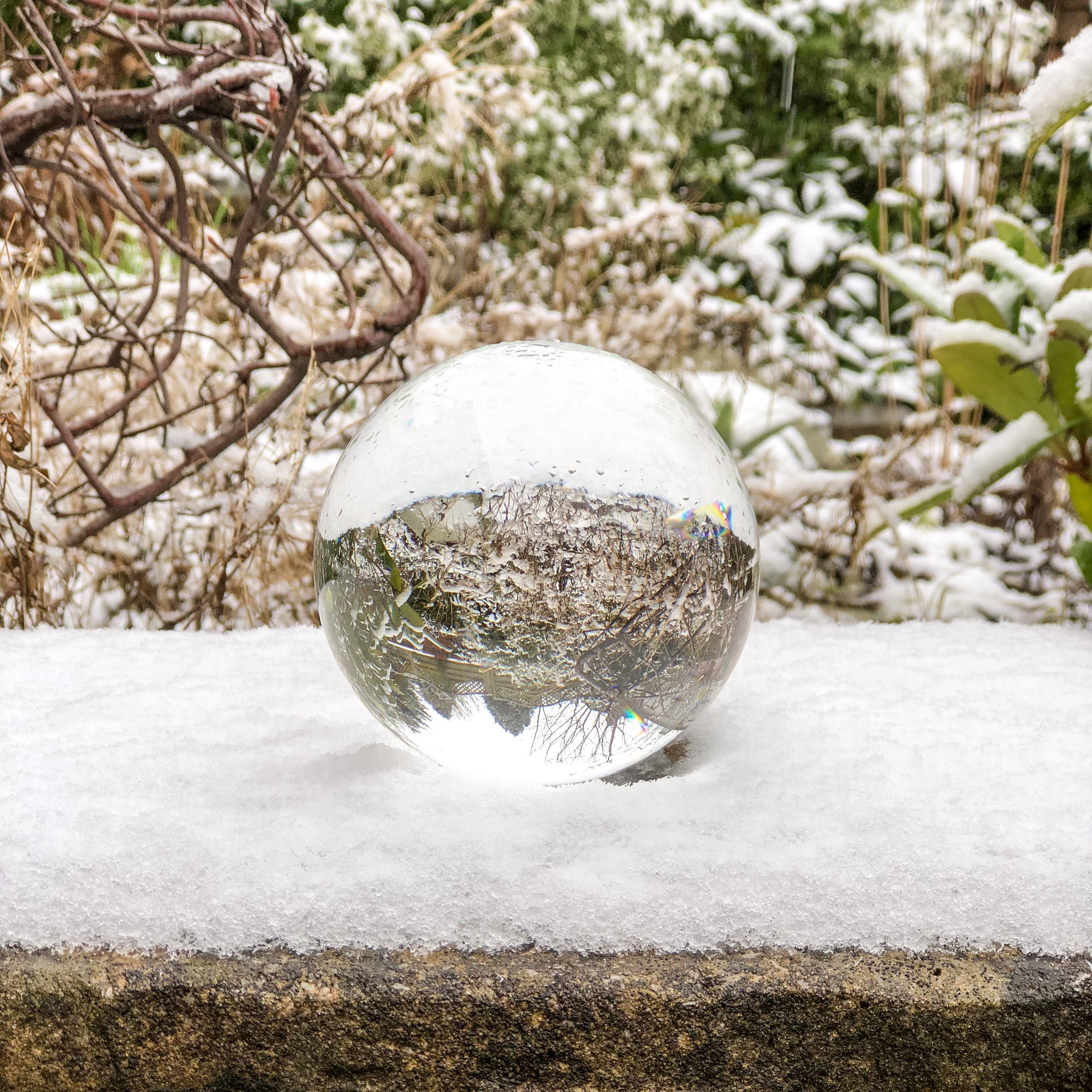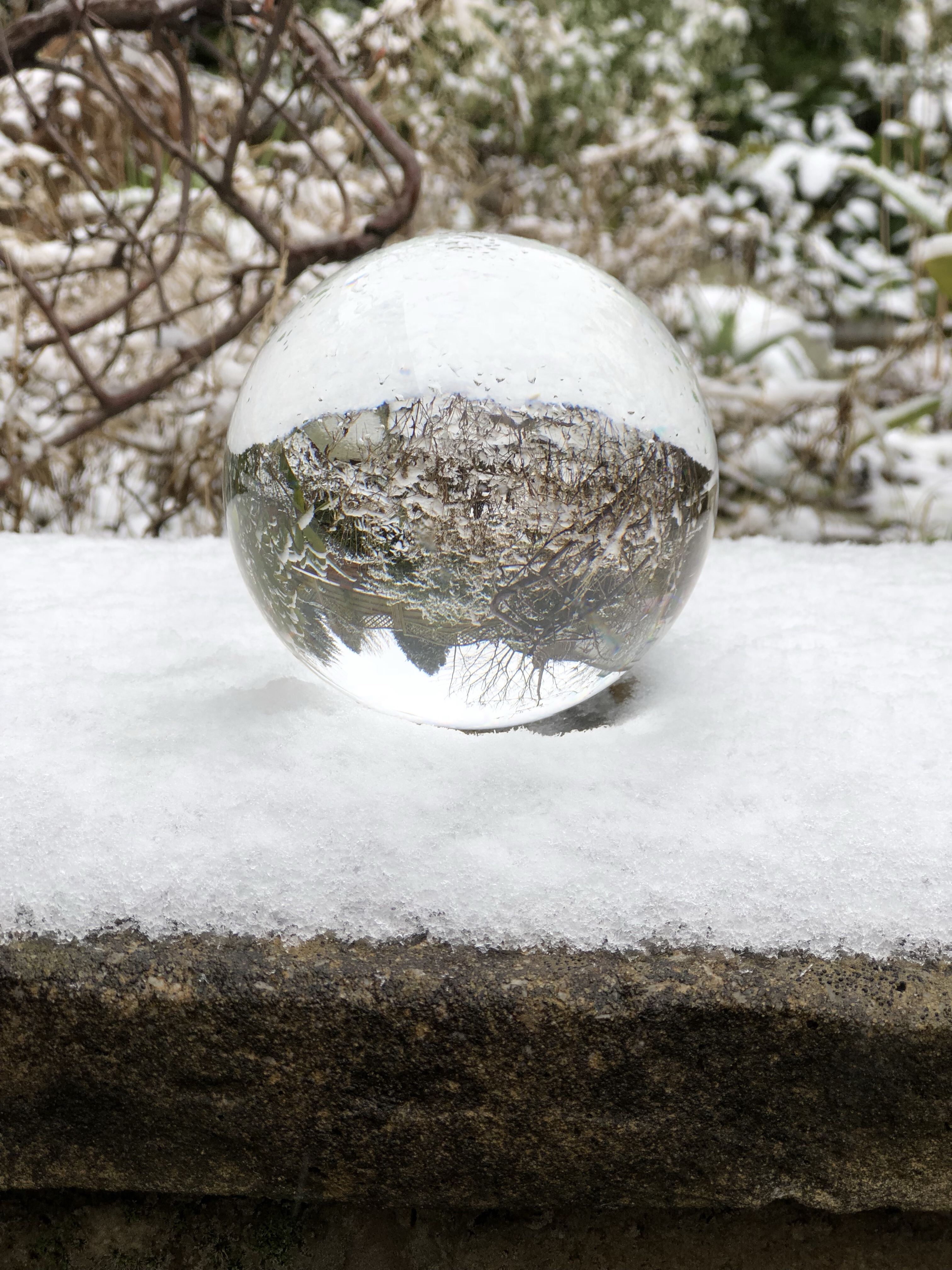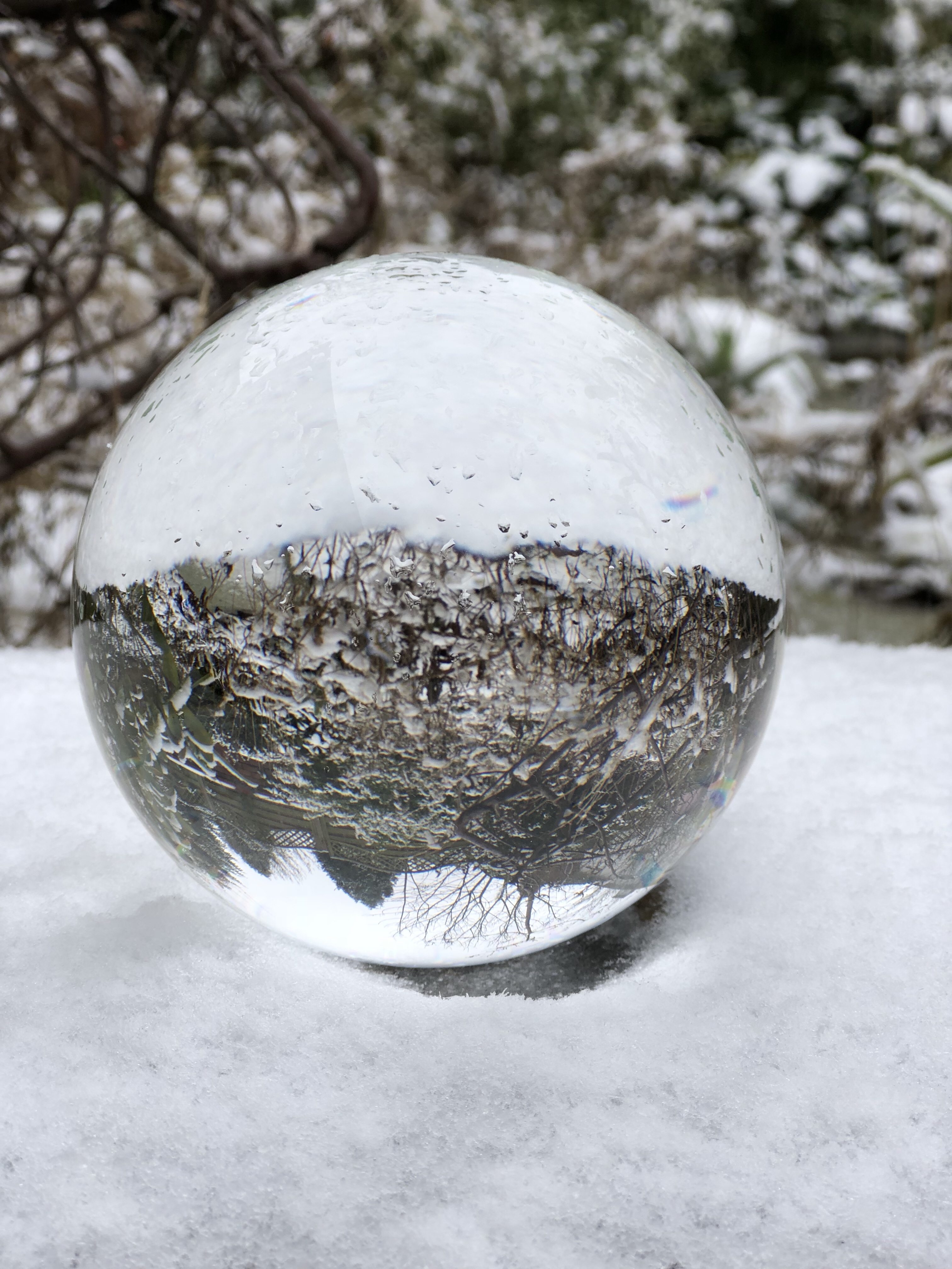 The first time I used it was sometime in mid-February when it snowed overnight, so I went into my garden the next morning and experimented with my Nikon D3200, my iPhone 8+, and my crystal ball.