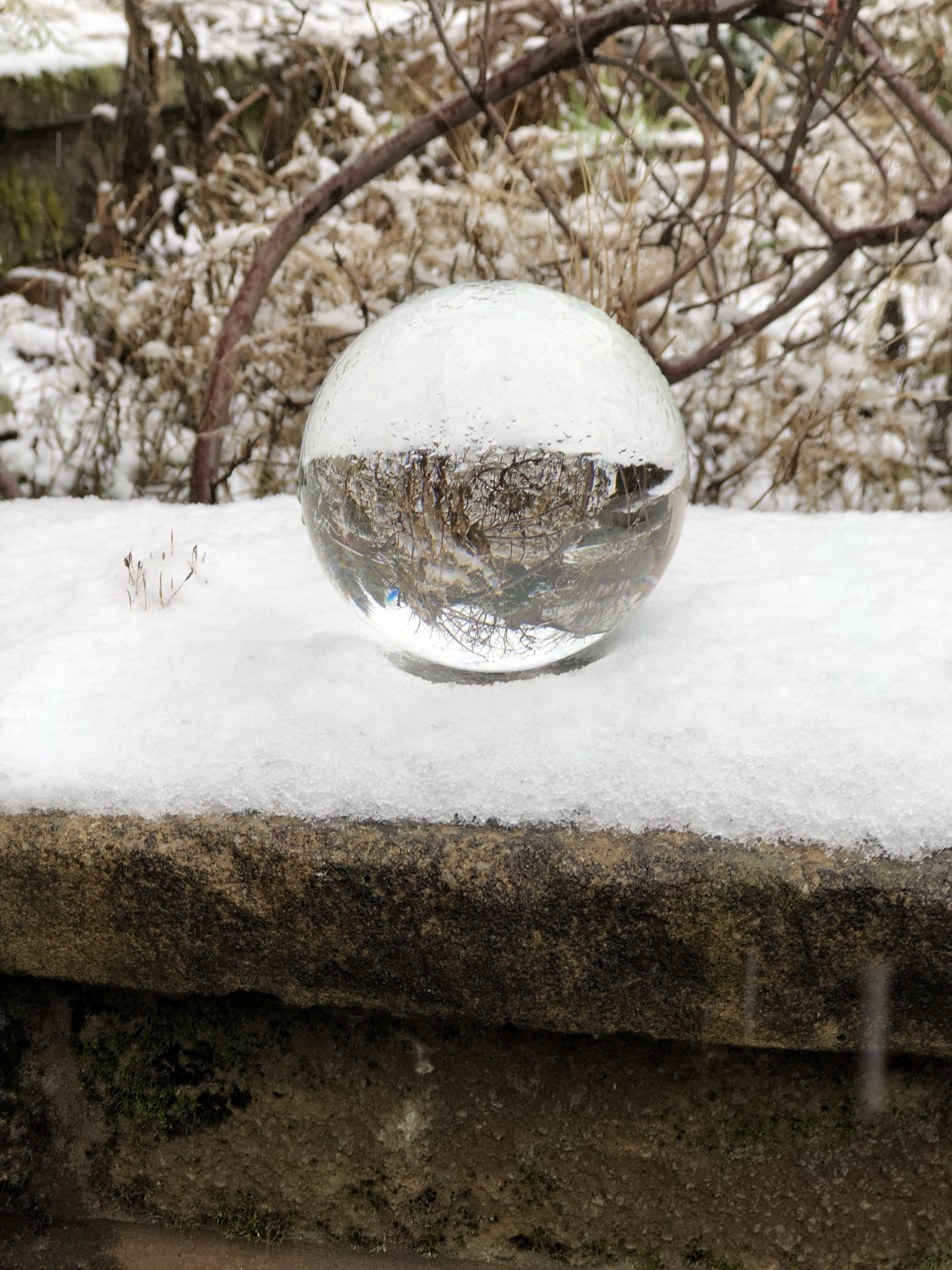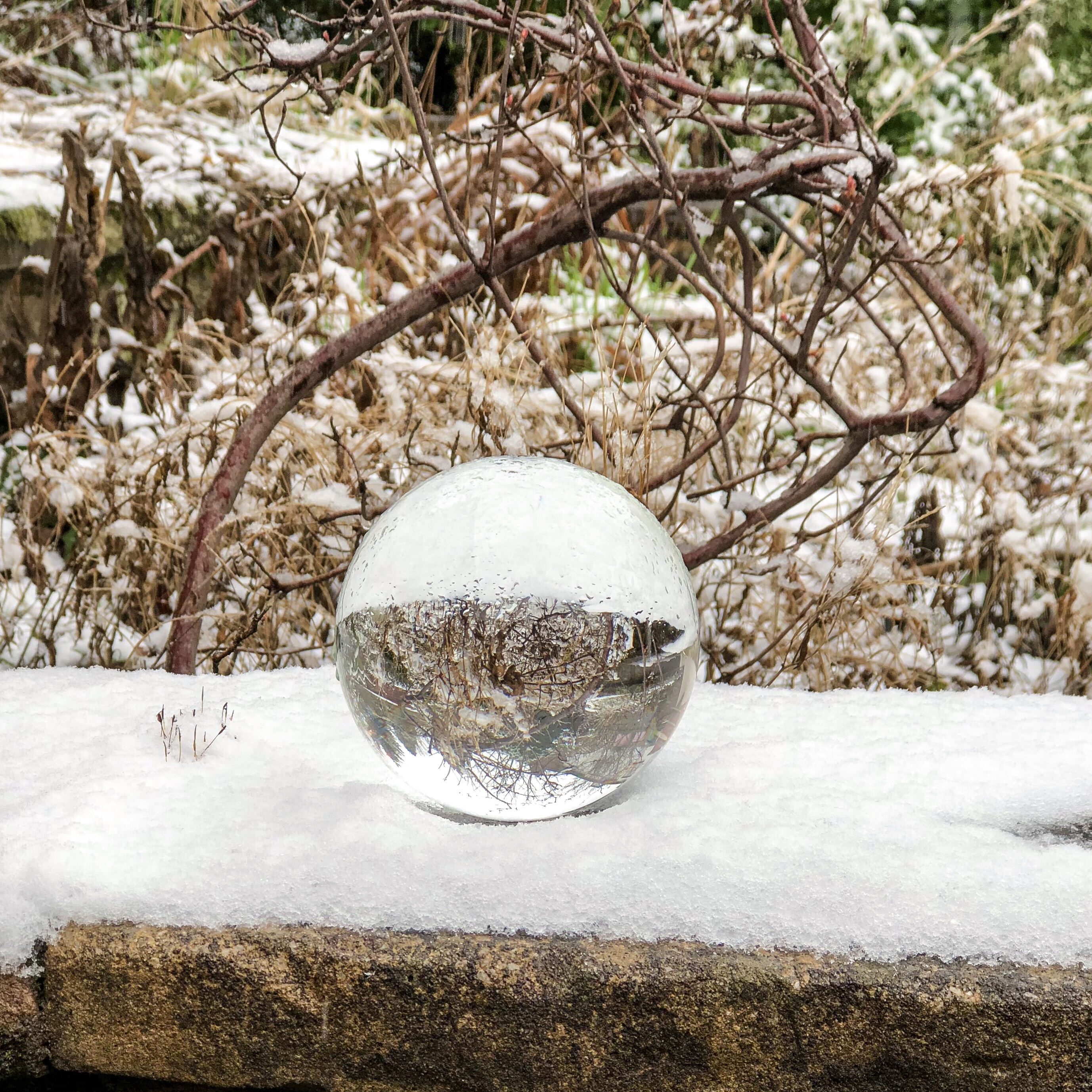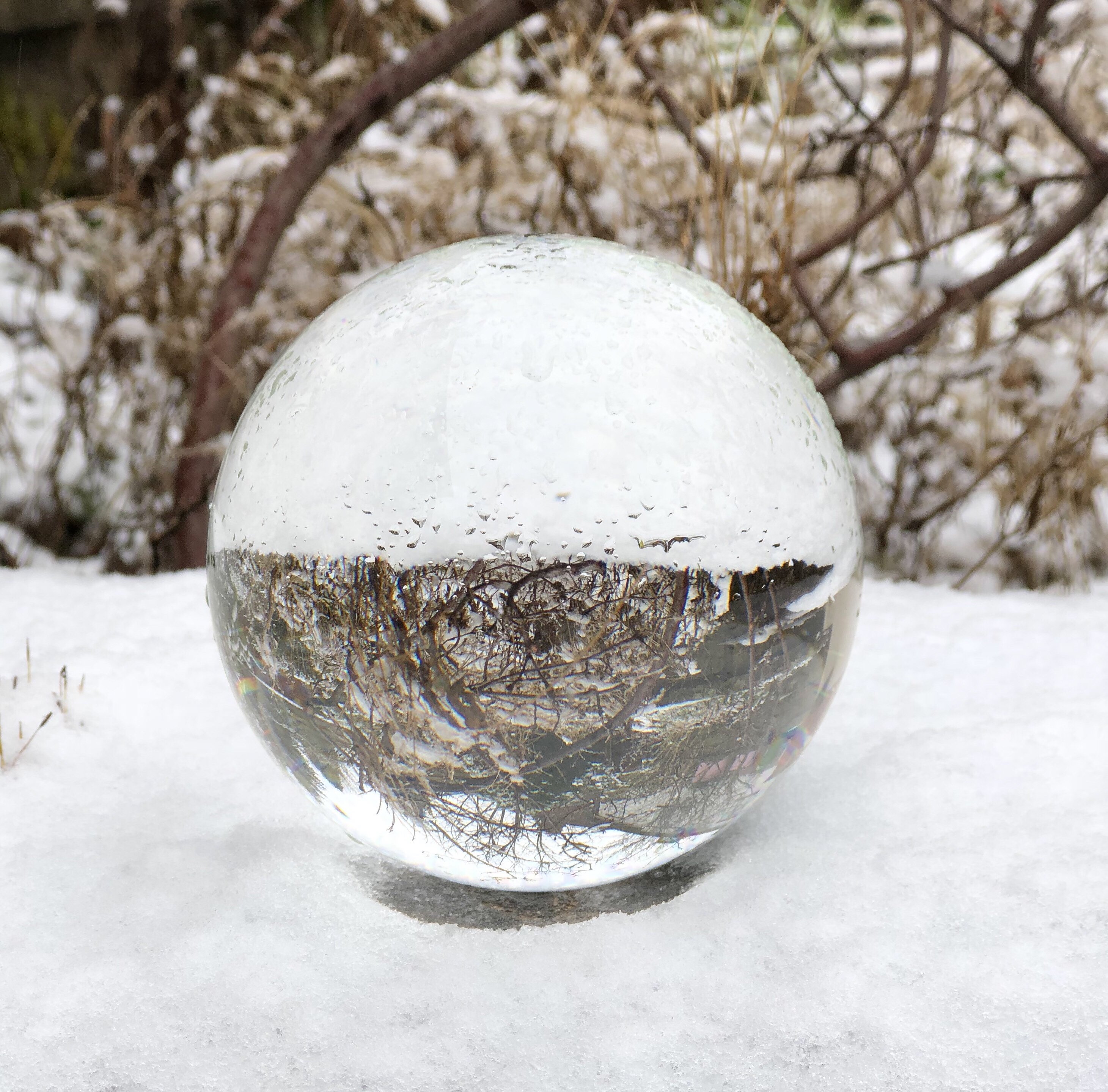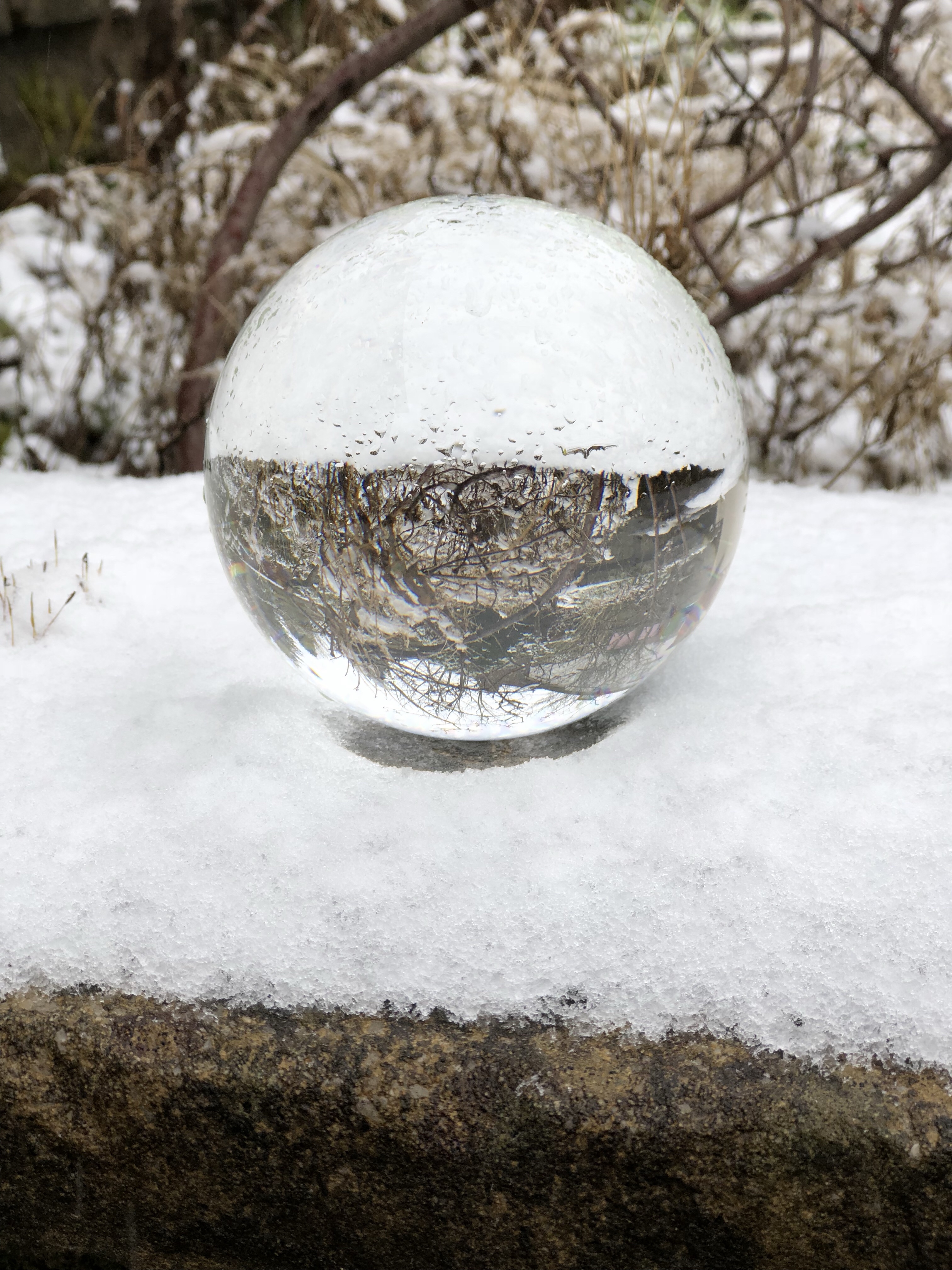 The first time I used it was sometime in mid-February when it snowed overnight, so I went into my garden the next morning and experimented with my Nikon D3200, my iPhone 8+, and my crystal ball.