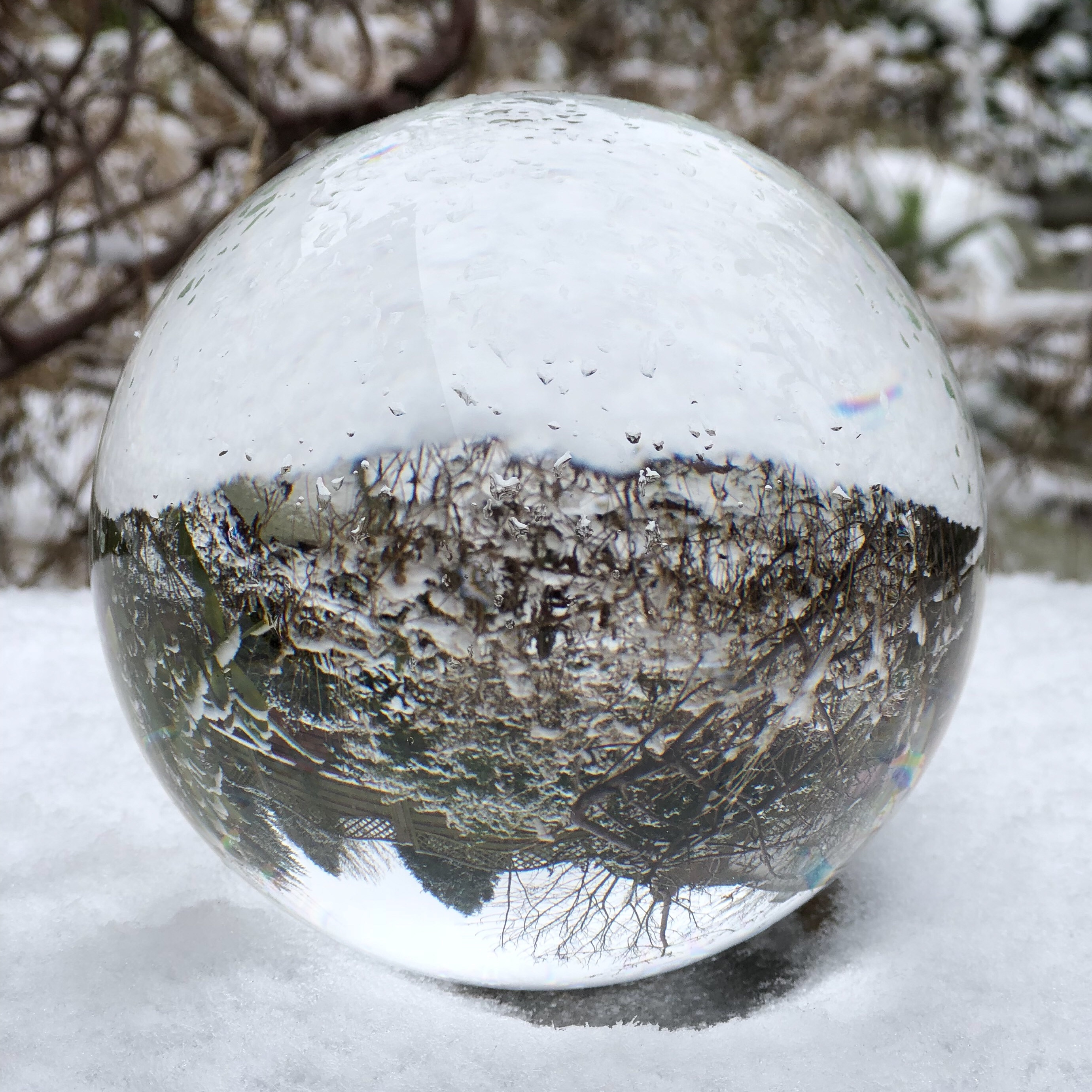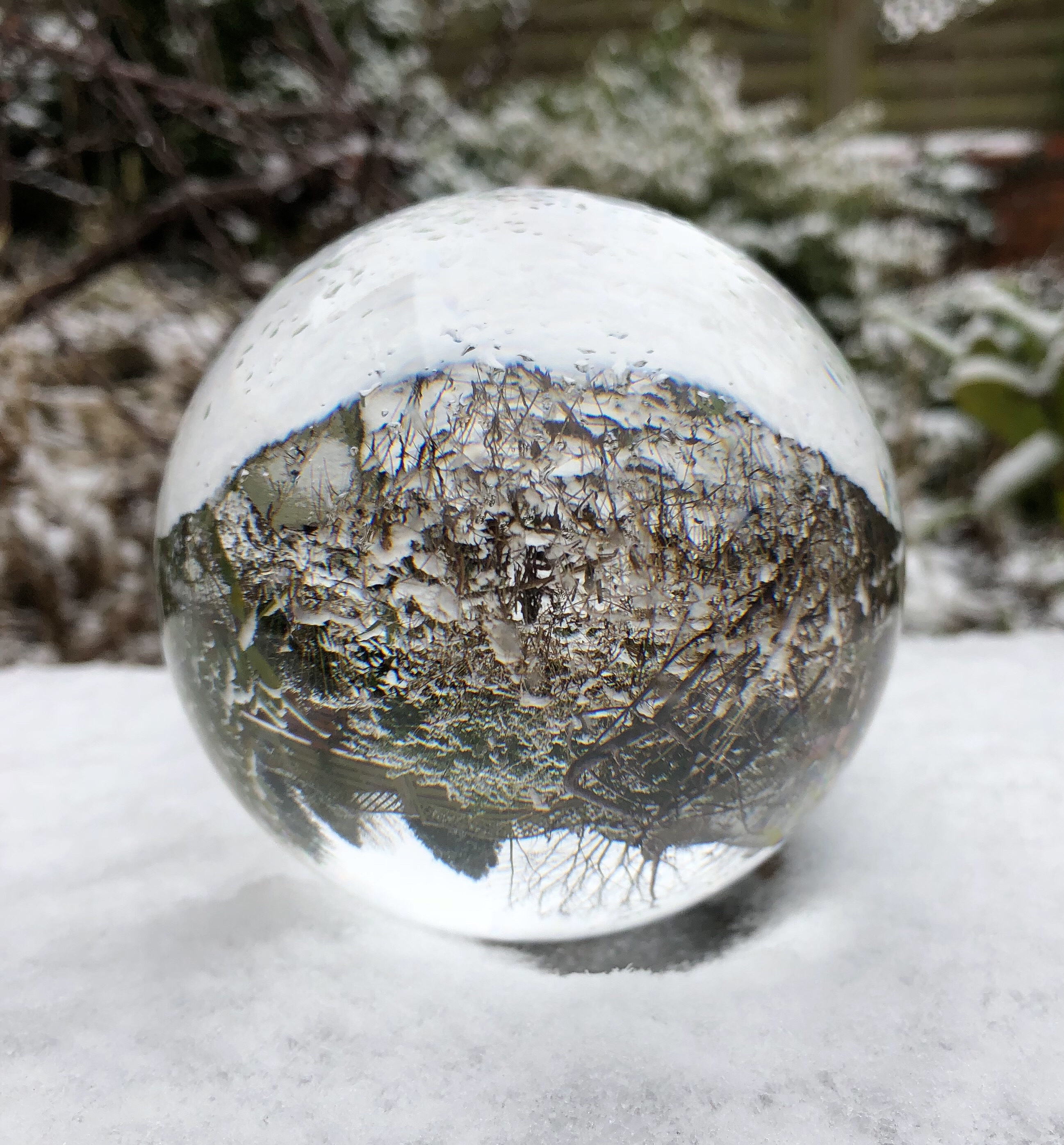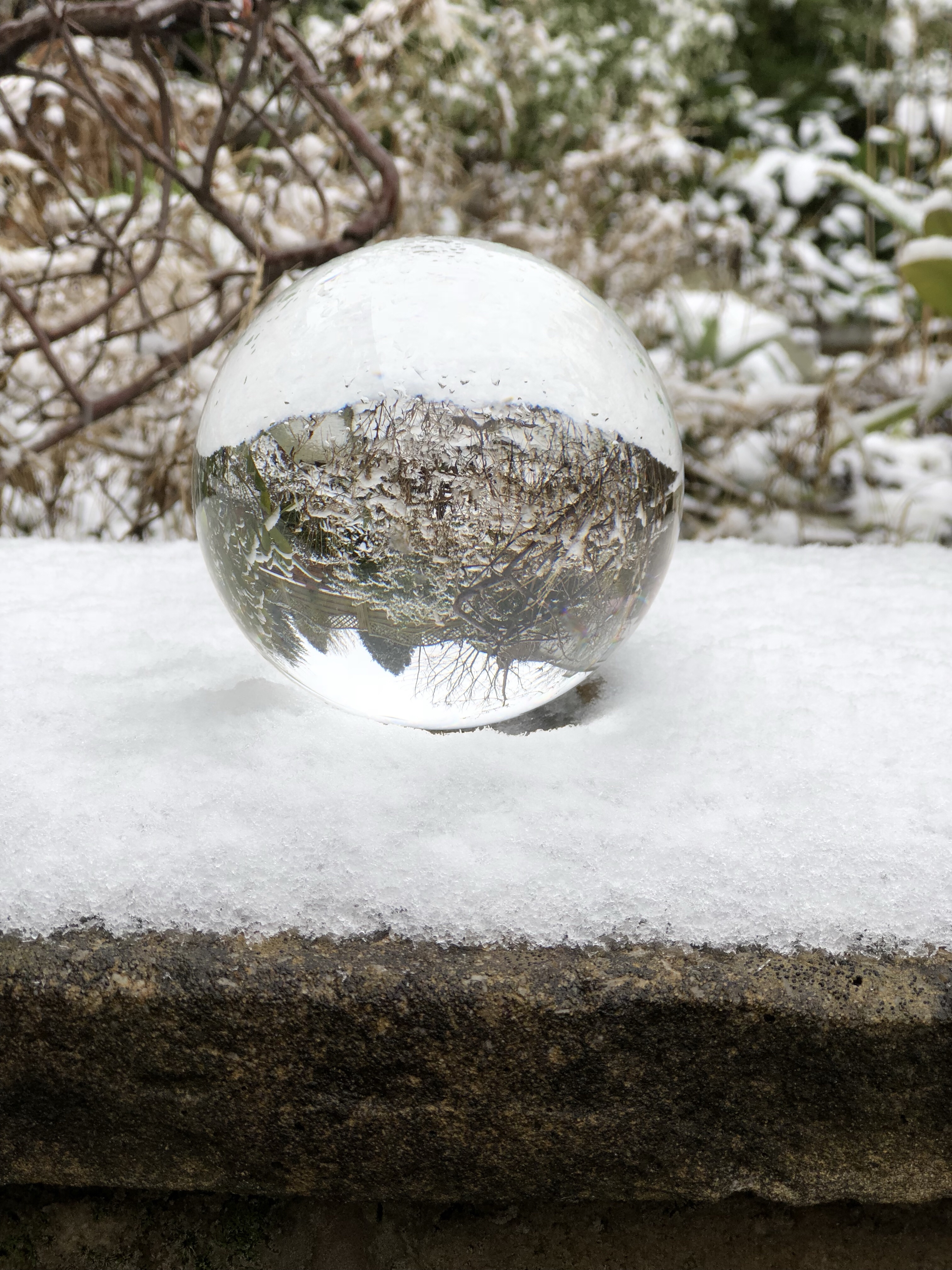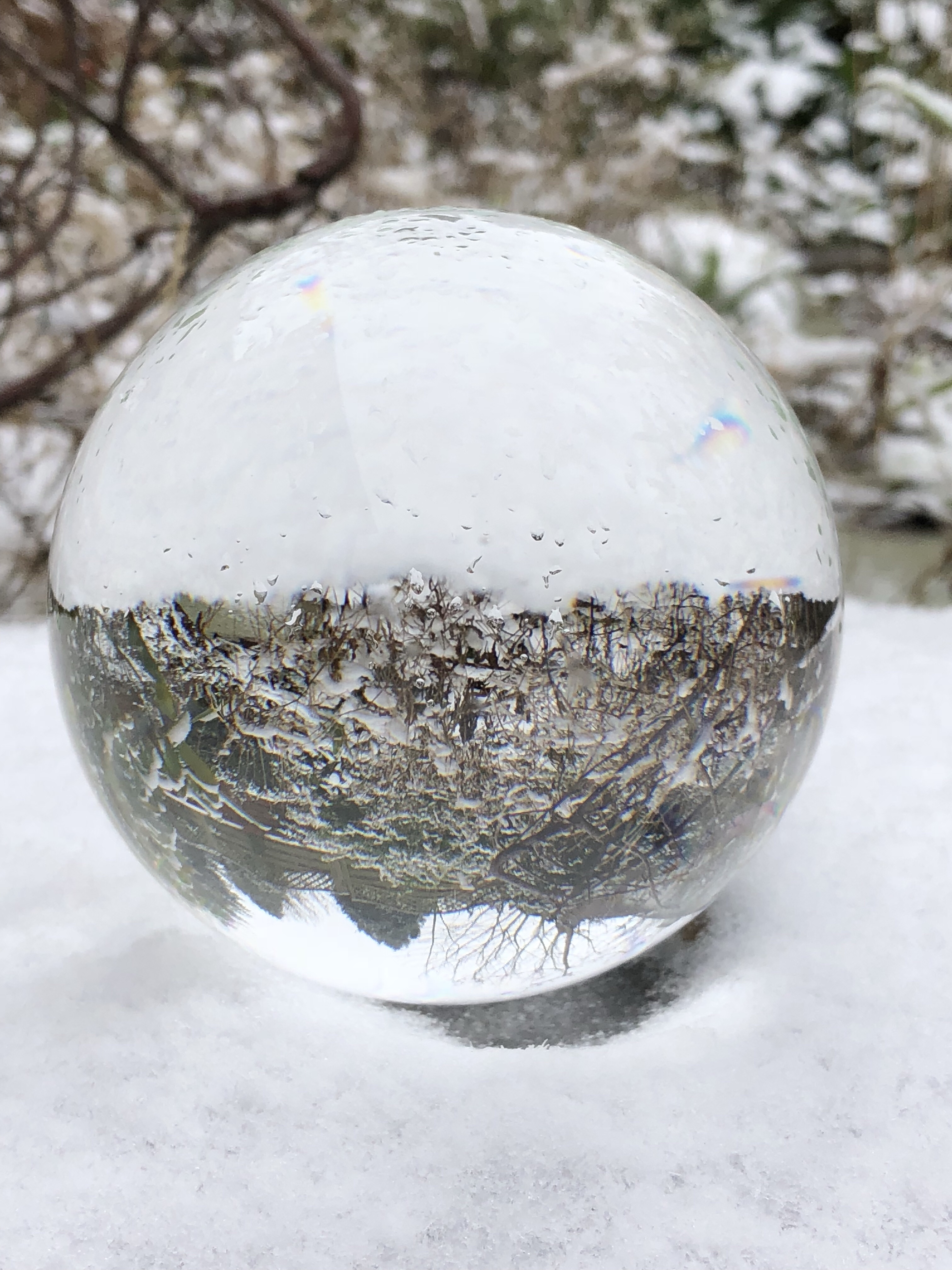 The first time I used it was sometime in mid-February when it snowed overnight, so I went into my garden the next morning and experimented with my Nikon D3200, my iPhone 8+, and my crystal ball.