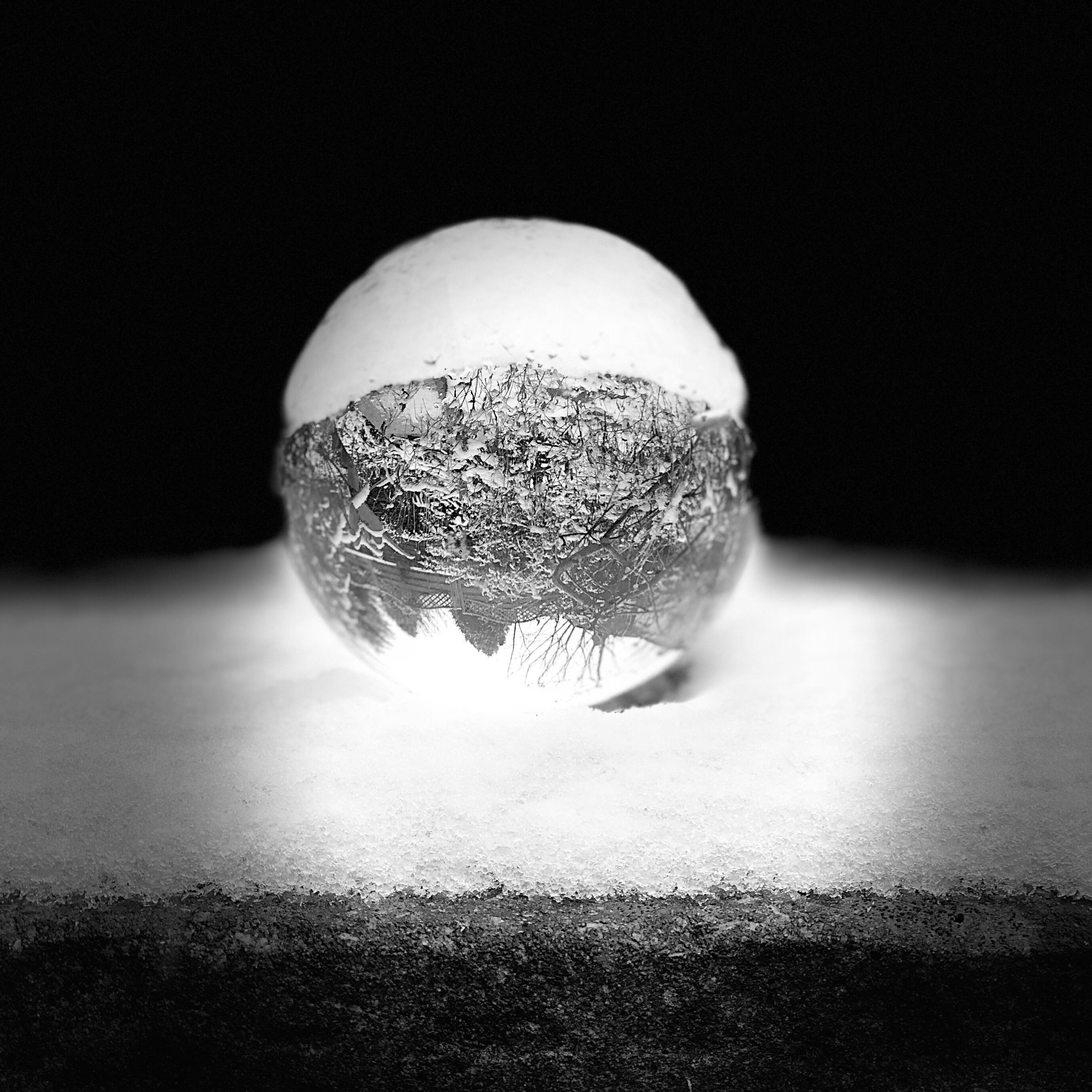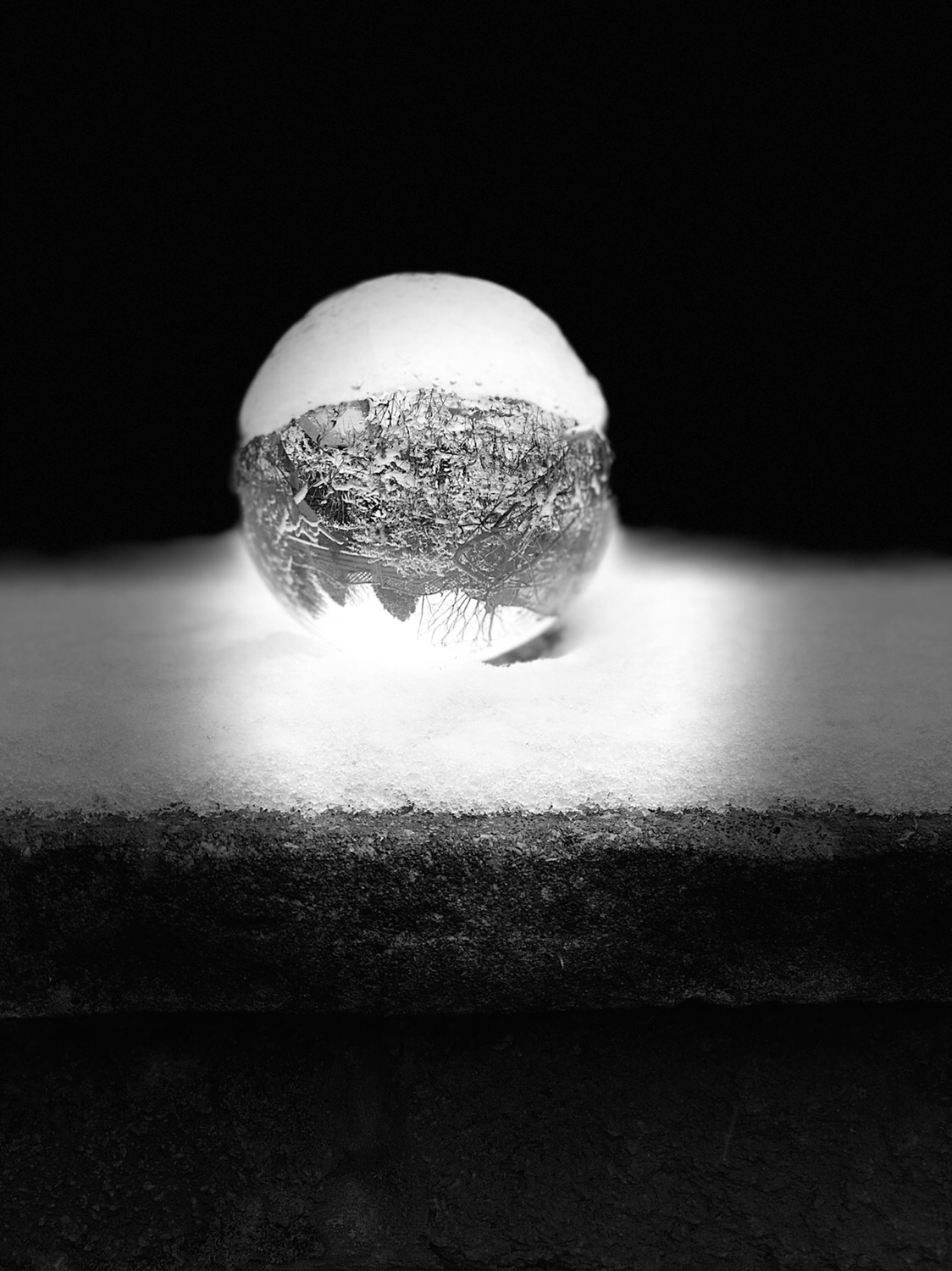 I also used portrait mode on my iPhone 8+ to test a variety of different types of lighting my crystal ball and edited these in photoshop express. My favourite set-up in portrait mode is the stage lighting in black and white as I felt it made the snow stand out.